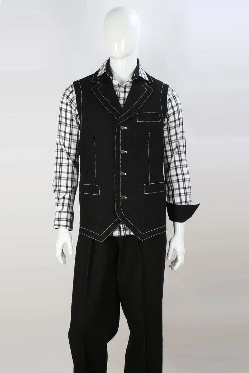 Style: Double breasted notch lapel vest and wide leg denim pants for a classic and timeless look