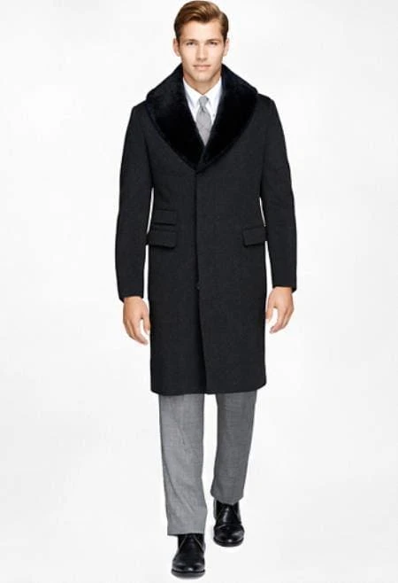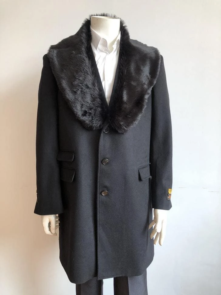 3 Button, 34″ Length, Woo-Blend, Removable Fur Collar