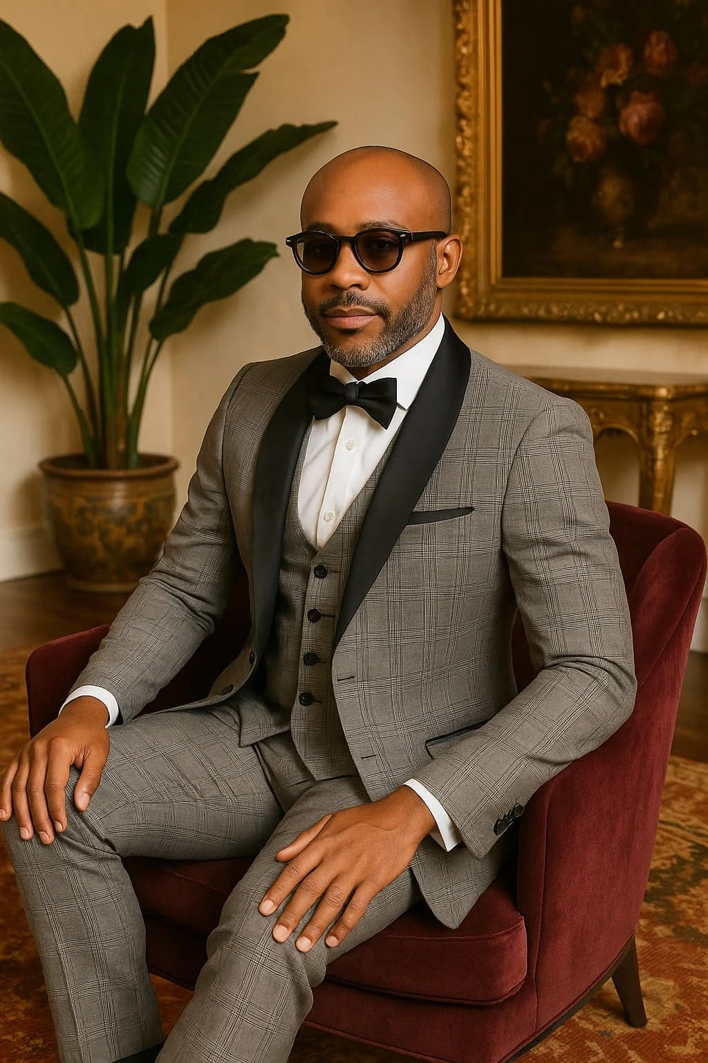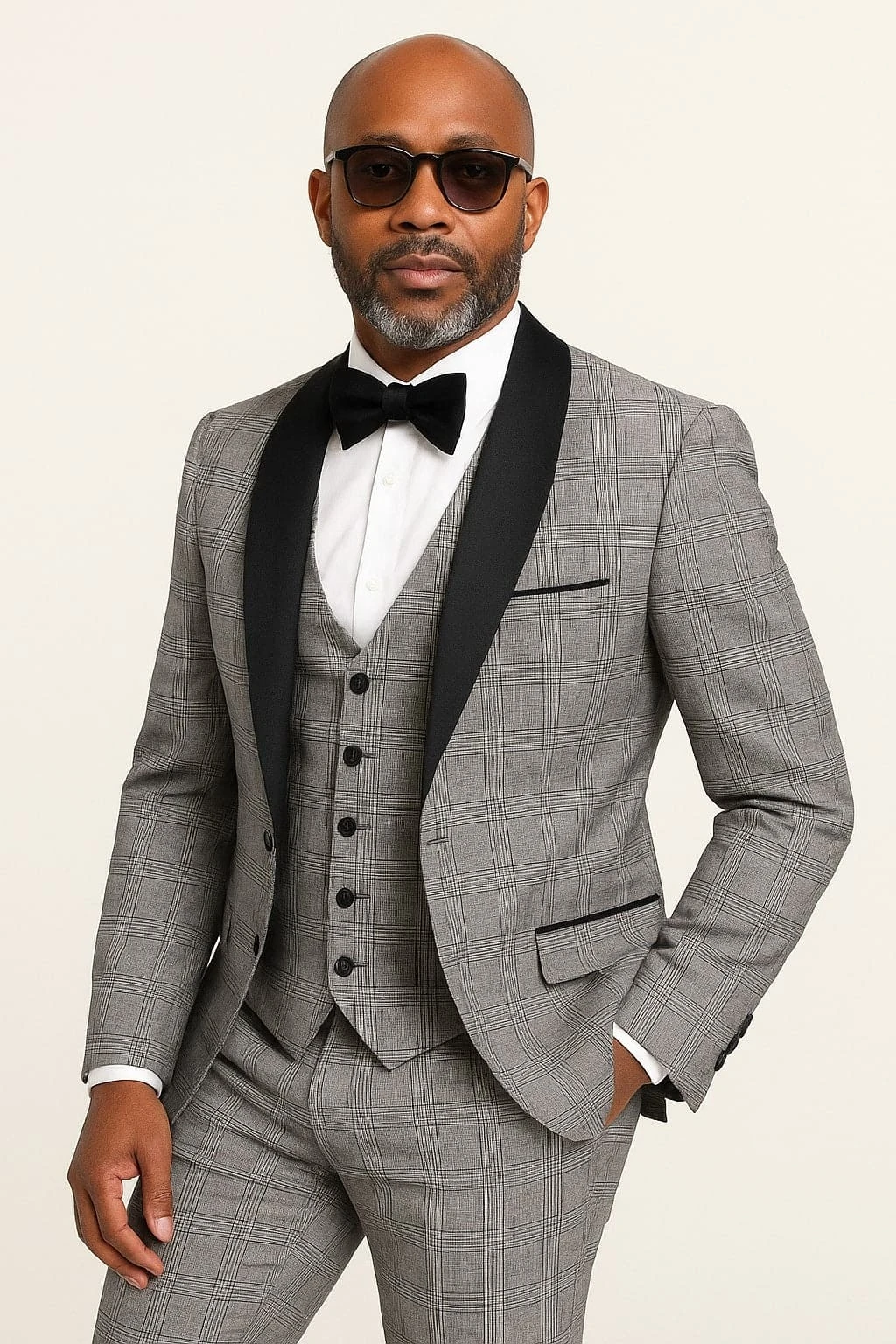 Command attention with this plaid tuxedo that blends sophistication and boldness in perfect harmony.
