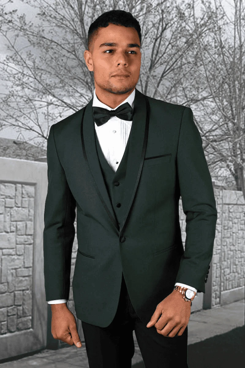 Be the first to review “Men’s Designer Vested Satin Trim Shawl Wedding & Prom Tuxedo In Hunter Green” Cancel reply