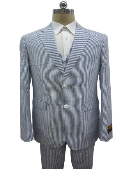 Be the first to review “Men’s Notch Label Dark Navy Colour Summer Seersucker Fabric Vested 3 Piece Suit” Cancel reply