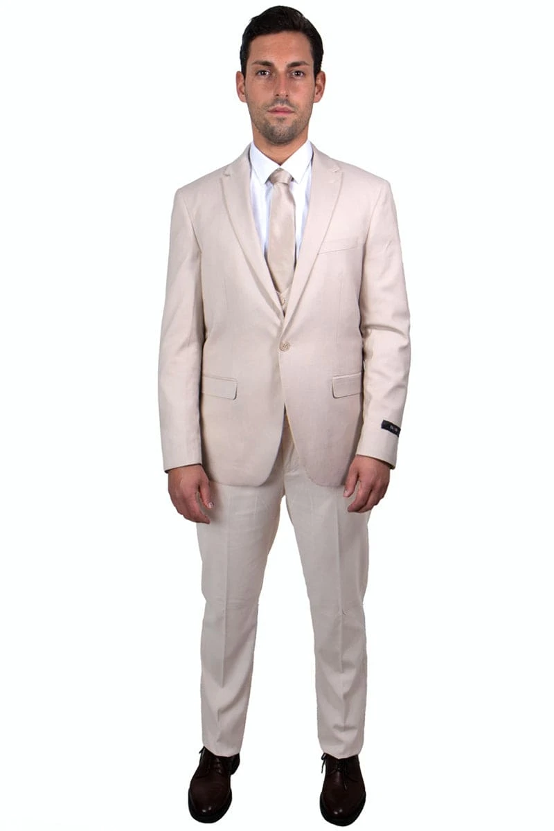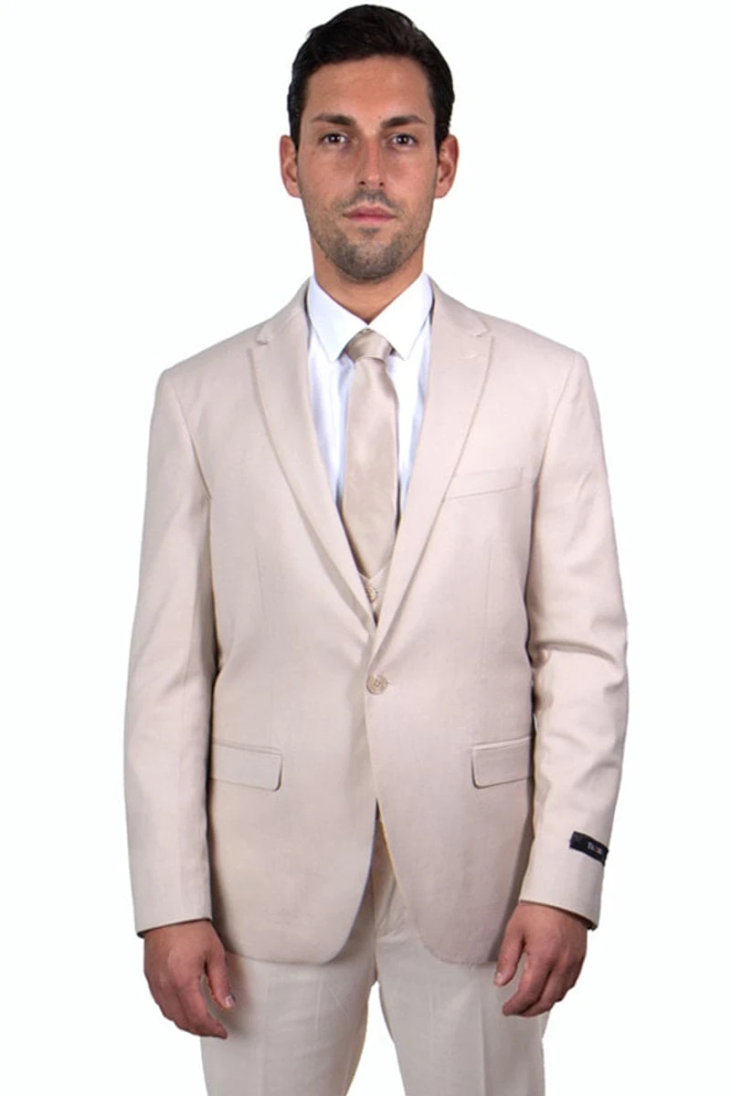 Be the first to review ““Men’s Skinny Wedding Suit – One Button Peak Lapel With Lowcut Vest, Tan”” Cancel reply