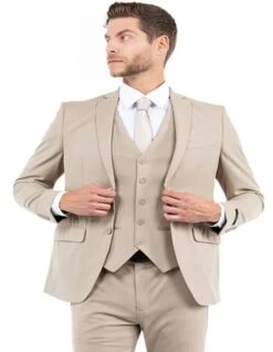 Men’s Vested Two Button Solid Color Wedding And Business Tan Suit