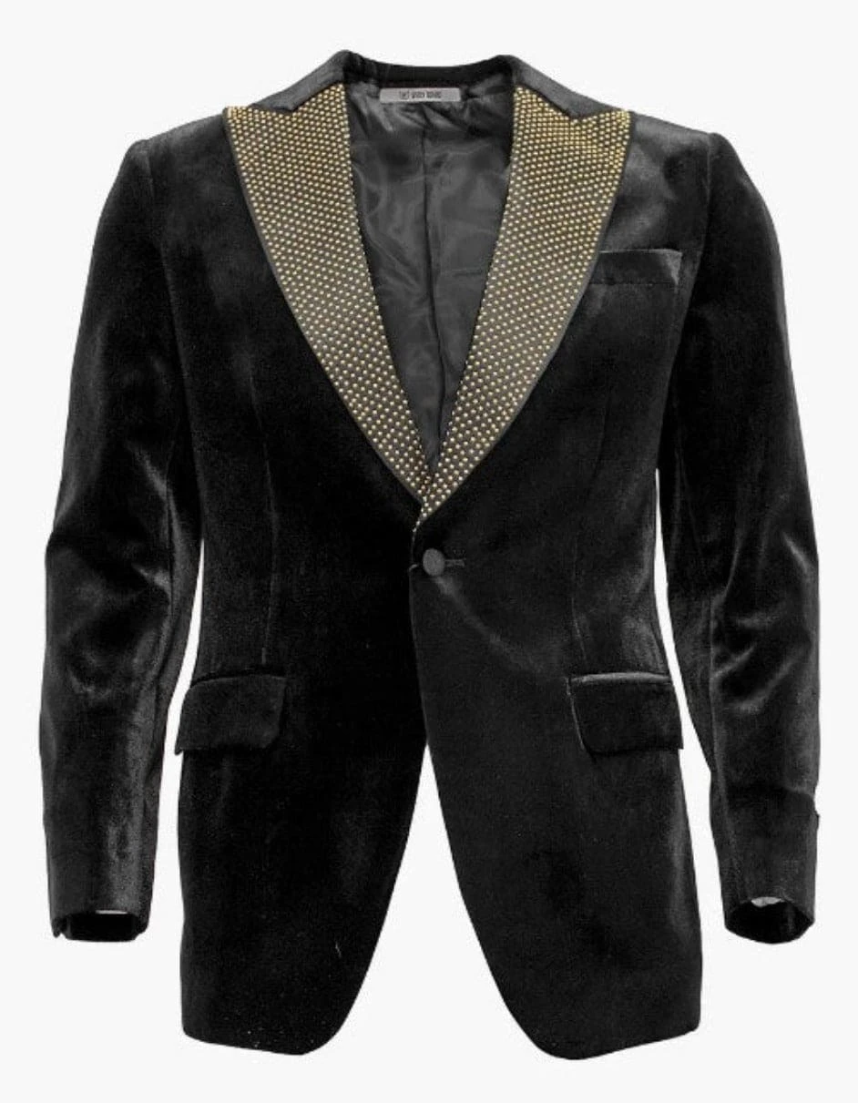 - Mens Black and Gold Lapel Tuxedo Dinner Jacket – Black Velvet Blazer Perfect For Prom and Wedding