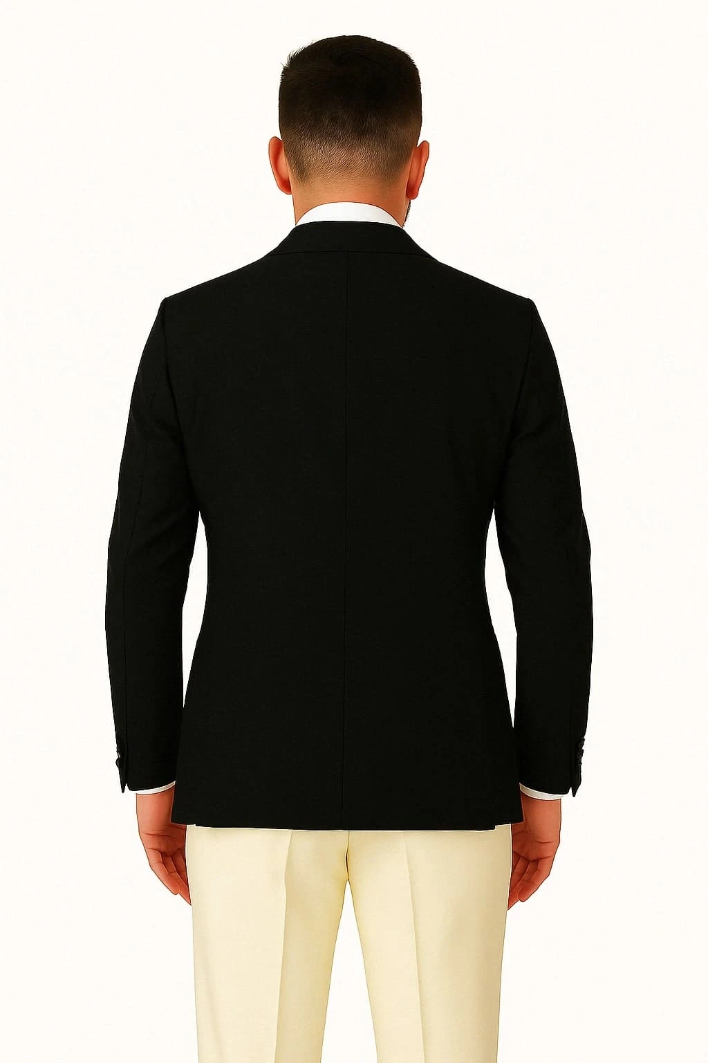 Elevate your formal-wear collection with this men’s black and ivory tuxedo, a perfect blend of classic elegance and modern sophistication. Designed with a striking ivory wide shawl lapel, this tuxedo creates a bold contrast against the jet-black jacket and trousers, making it ideal for high-end occasions, black-tie events, galas, and weddings.