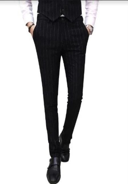 Mens Black Pinstripe Dress Pants – Stripe Slacks – Two Side Pockets With Zipper Fly