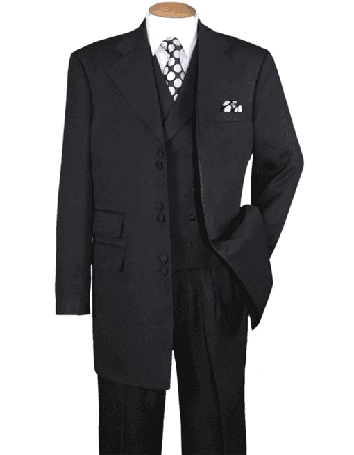 Mens Pimp Suit -Gangster Suit – Mobster Suit – Mafia Suit For Mens 6 Button Double Breasted Vest Zoot Suit in Black