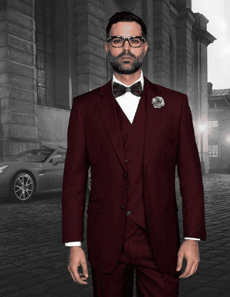 Mens Suits Regular Fit – Wool Suit – Pleated Pants burgundy Suit