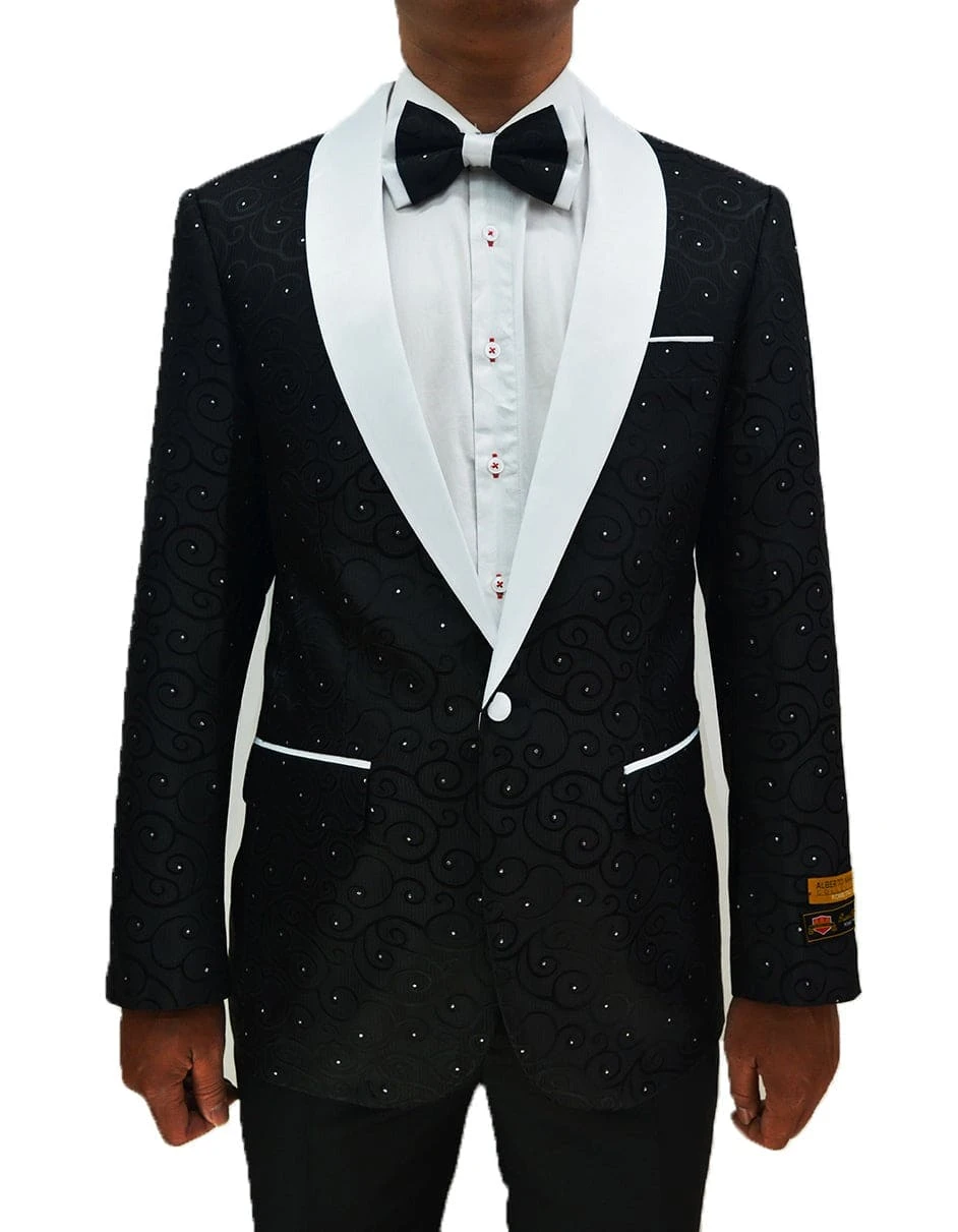 Be the first to review “Mens Swirl & Diamond Pattern Prom Tuxedo Jacket In Black & White” Cancel reply
