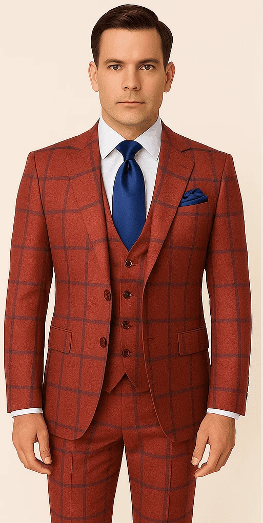 This 3-piece ensemble includes a tailored jacket, vest, and trousers.