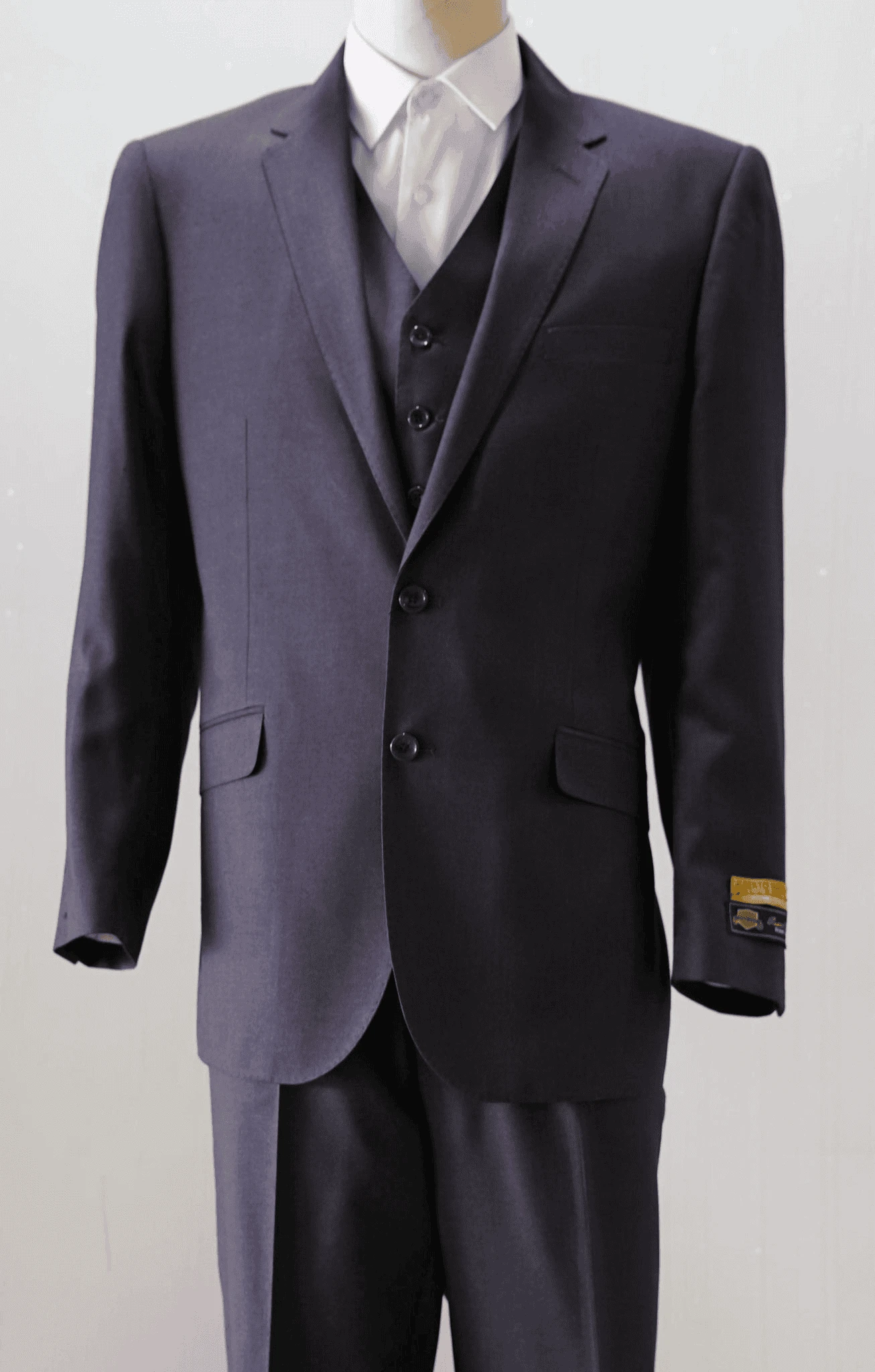 3 Button Notch Lapel, Vested, Side Vented, Classic fit, Pleated Pants, Wool.
