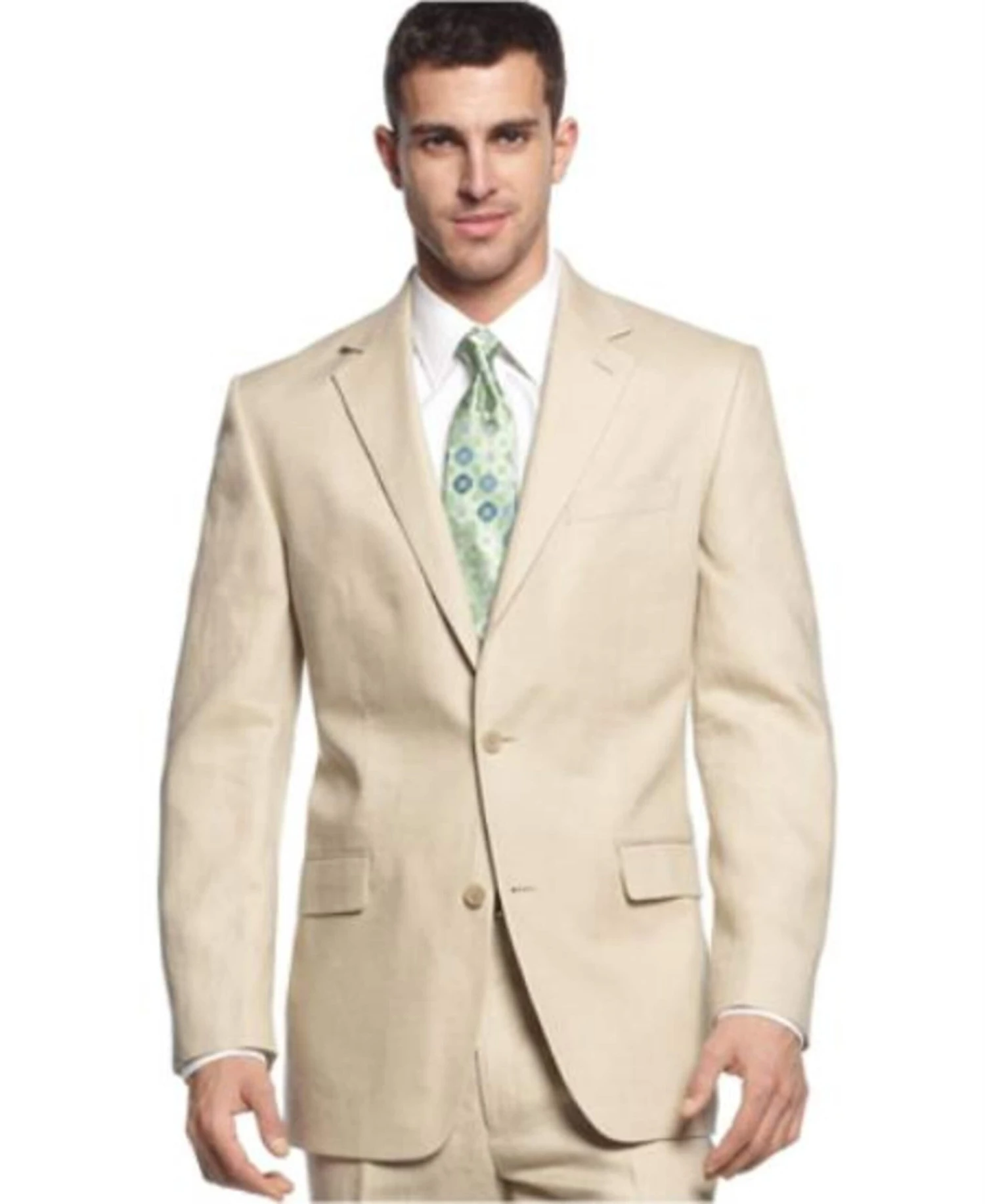 Tan Linen Suit – Men’s Two Button Peak Lapel Summer Linen Style Beach Tan Wedding Suit
