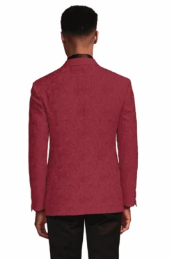 Burgundy Paisley Slim Fit Tuxedo Jacket – Men’s Wedding & Prom Blazer With Satin Shawl Lapel