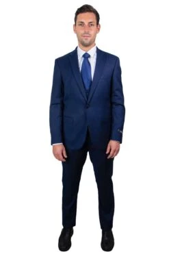 “Ocean Blue Sharkskin Wedding & Business Suit – Men’s Two Button Hybrid Fit Vested”